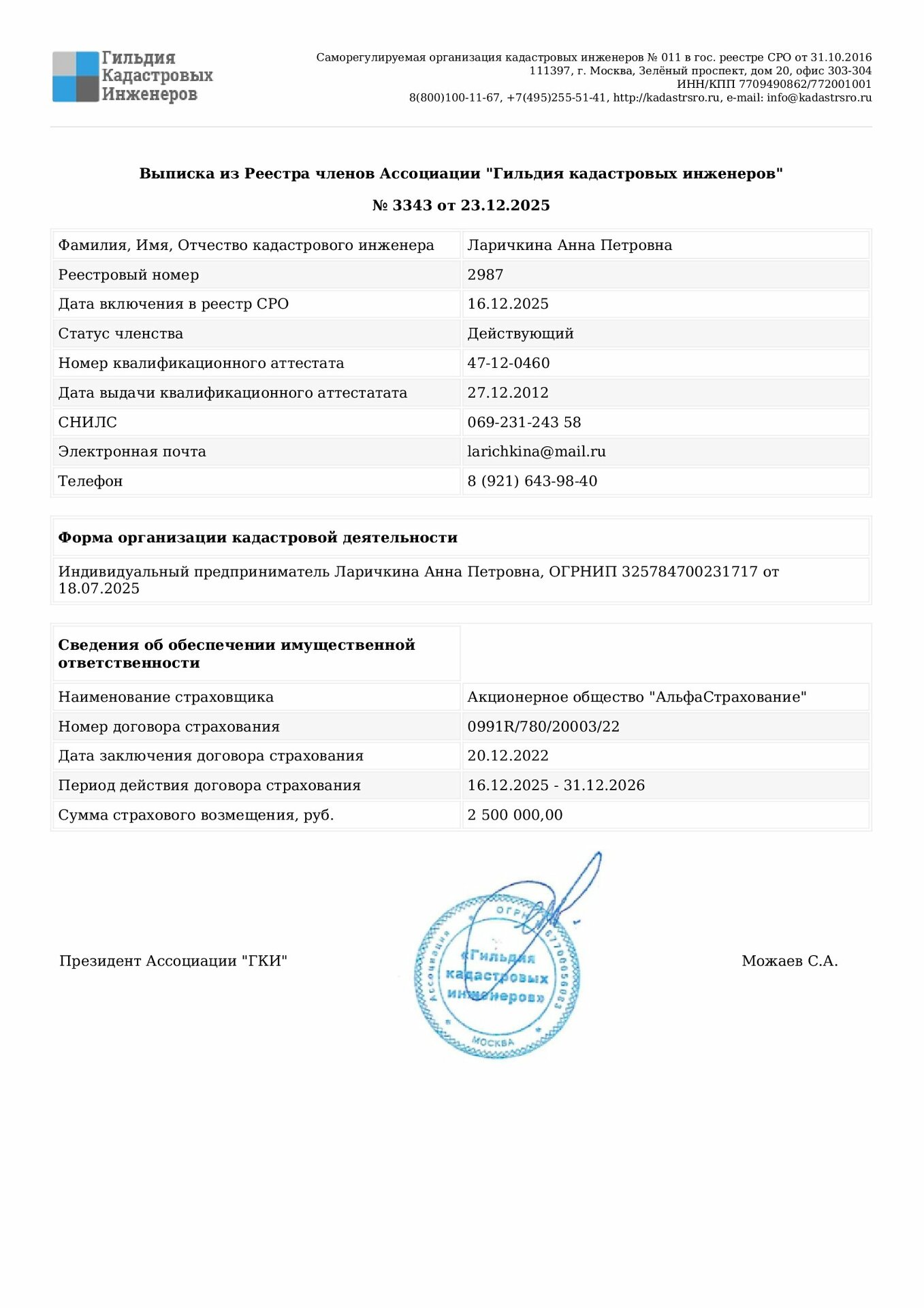 Информацию обо мне можно получить из реестра кадастровых инженеров на официальном сайте Росреестра